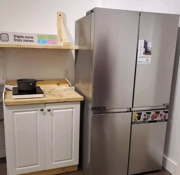 虽然这个地方看起来还算干净整洁,但是家具粗制滥造,非常简陋,比如一个便携式电炉,一个简易的木架子和两个橱柜。
