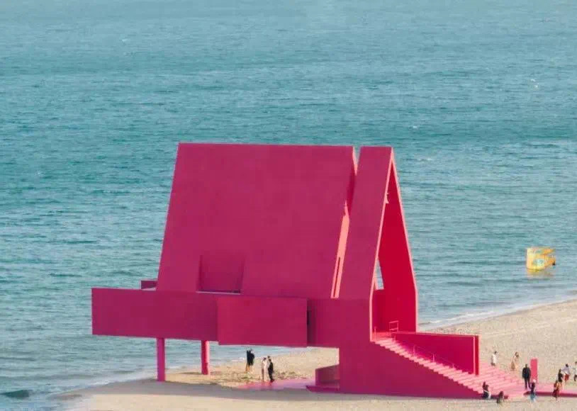 ▲“沙之乐园”属于LV秀场的限时景点,秀后即刻拆除,大有“阅后即焚”的意思。提一句,阿那亚这个看起来地中海调调的名字,其实是我们秦皇岛的一个地名,梵语“人间寂静处,找回本我的地方”的意思。建筑设计师董功打造阿那亚时,灵感来自Andrew Wyeth的画作,海浪、海风... ...让时间凝固成一种永恒,好像在说人在寂静中会磨砺出一种隽永的精神底色。▲Andrew Wyeth的画作,Sea Running (左)Wind from the Sea(右)用董功的话说:“画面里所有东西都是凝固的,呈现出人与社会之间的距离,有一种近乎永恒的时间性。”时尚界尤其偏爱这种并不是那么多人知道但又看起来很有故事性和艺术感的地方,相较于LV,我倒是觉得阿那亚今年第二场来自Valentino的粉红秀更有意思。因为Valentino把整个小镇涂成粉色来办秀。并且不是普通的粉色,而是色彩机构 Pantone 为 Valentino 独家研发,名为“Pink PP”的粉色。也不知道是不是因为疫情期间疲软的销量,又或者是设计师Pierpaolo Piccioli上线以来Valentino已经太久没有爆炸性话题。自2022年初开始,Valentino突然抛弃了已经宣传了几十年的华伦天奴红,炒作起了这支新的Pink PP,病毒式颠覆性地席卷时尚界和娱乐圈。▲从1959年第一条 “Fiesta”小红裙至Pink PP出现之前,红色一直是Valentino家的标志,用Valentino老先生的话说,红裙子不仅是一种表达,更是时尚的代名词。是不是很耳熟,抓住一个显眼又突出的颜色大肆宣传,这套路对于Valentino来说也不年轻了。说实话,Valentino Pink PP每次出现穿在某某明星(特别是亚洲明星)身上,基本上是槽点狂飞。毕竟在大多数国人审美里,高饱和粉色本身就地狱级挑战,本身的轮廓、气场不够强大,就还蛮容易落入俗流的。其实,Valentino的Pink PP粉是一种新型的黑色。