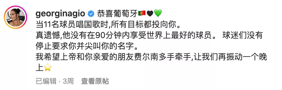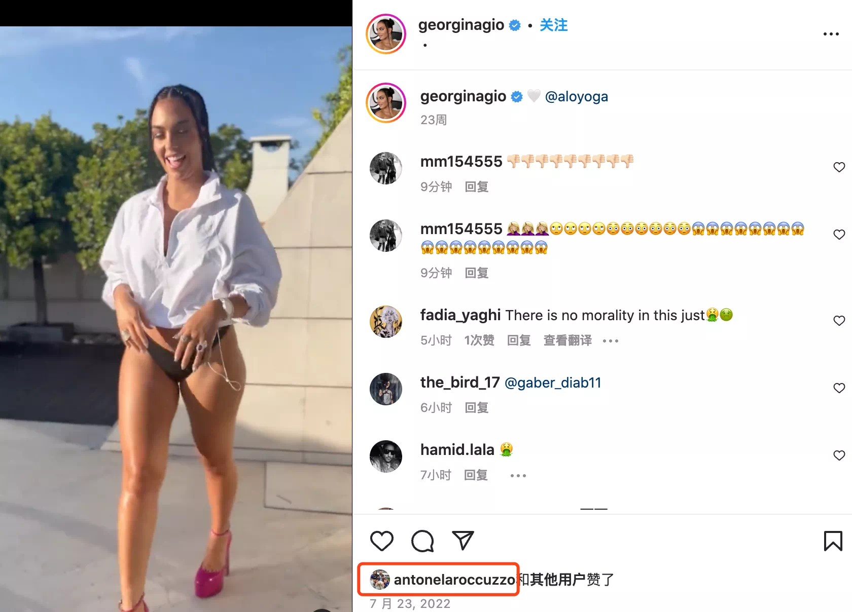 ▲其实乔治娜和C罗真是一个被窝睡不出两种人,C罗平时也是喜欢满手大钻戒的。乔治娜的拜金,虽然很吸引眼球,但也有很多人看不惯,导致她的社交账号中也时常出现鄙视的言论,说她庸俗啦,没有道德感啦,golden girl啦,但是乔治娜倒是没再怕的,毕竟有话题好过没话题。 ▲搞笑的是,安东内拉还点赞了这条不咋受欢迎的帖子。乔治娜很擅长为自己营造话题,总是能精准地赋予一些吸睛的tag,比如她在纪录片里说过一句流传甚广的名言——我以前卖包,现在买包。虽然听起来真的是拜金味十足,但这就是她的立身之本啊,你不得不承认能一直获得大众关注,这是一种天赋和能力,尤其在自媒体时代,拥有这种能力的几乎都会在社交网络上玩得风生水起。 虽然很多人说乔治娜攀附在C罗身上才获得如今的奢华生活,这话也不全面,乔治娜本身的招话题体质也为C罗贡献着名气。目前在全球的名人夫妇中,他们两口子是拥有粉丝量最多的,比第二名凯莉·詹娜夫妻还多出了2亿粉丝,可以想象这其中蕴含的巨大价值。单凭C罗自己,还不足以达到这种程度,但他有一个太有名的另一半了,加乘效果很明显。 当然,按照社交媒体的普遍发展规律,如果不是著名的歌手、演员、运动员,没有扎实的作品和实力,一般靠话题出名的名人,最辉煌的职业生涯平均是2-3年。我们不得不好奇,当C罗最终退役,当新的一代足球巨星诞生,乔治娜的故事该走向何处?这也是一个很好的名利场观察样本。