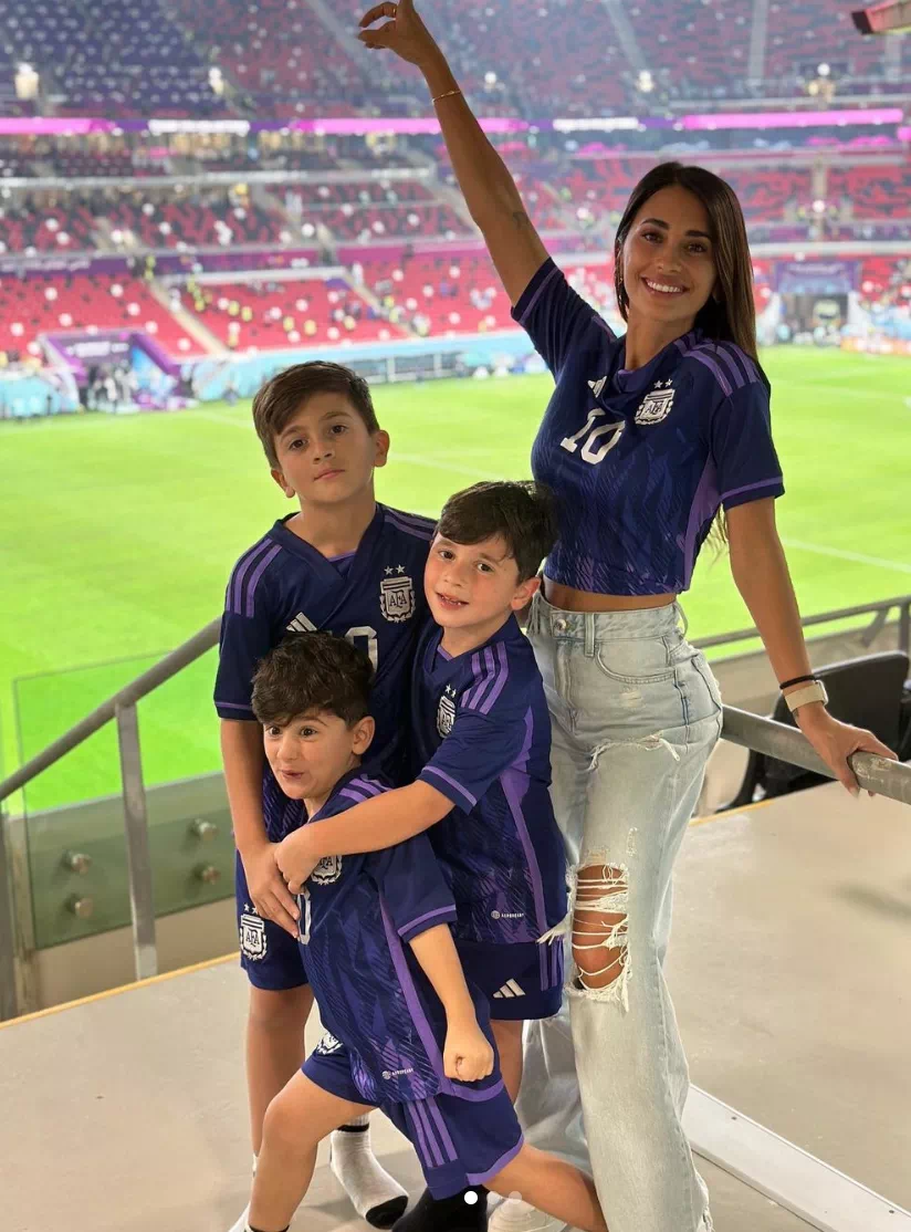 和梅西恋爱之后,安东内拉就一直在生孩子,他们一共生了三个儿子,分别是蒂亚戈(2012 年出生)、马特奥(2015 年出生)和西罗(2018 年出生)。 三个小朋友彼此相差三岁,连身高都是有规律的递增,站在一起十分激萌。