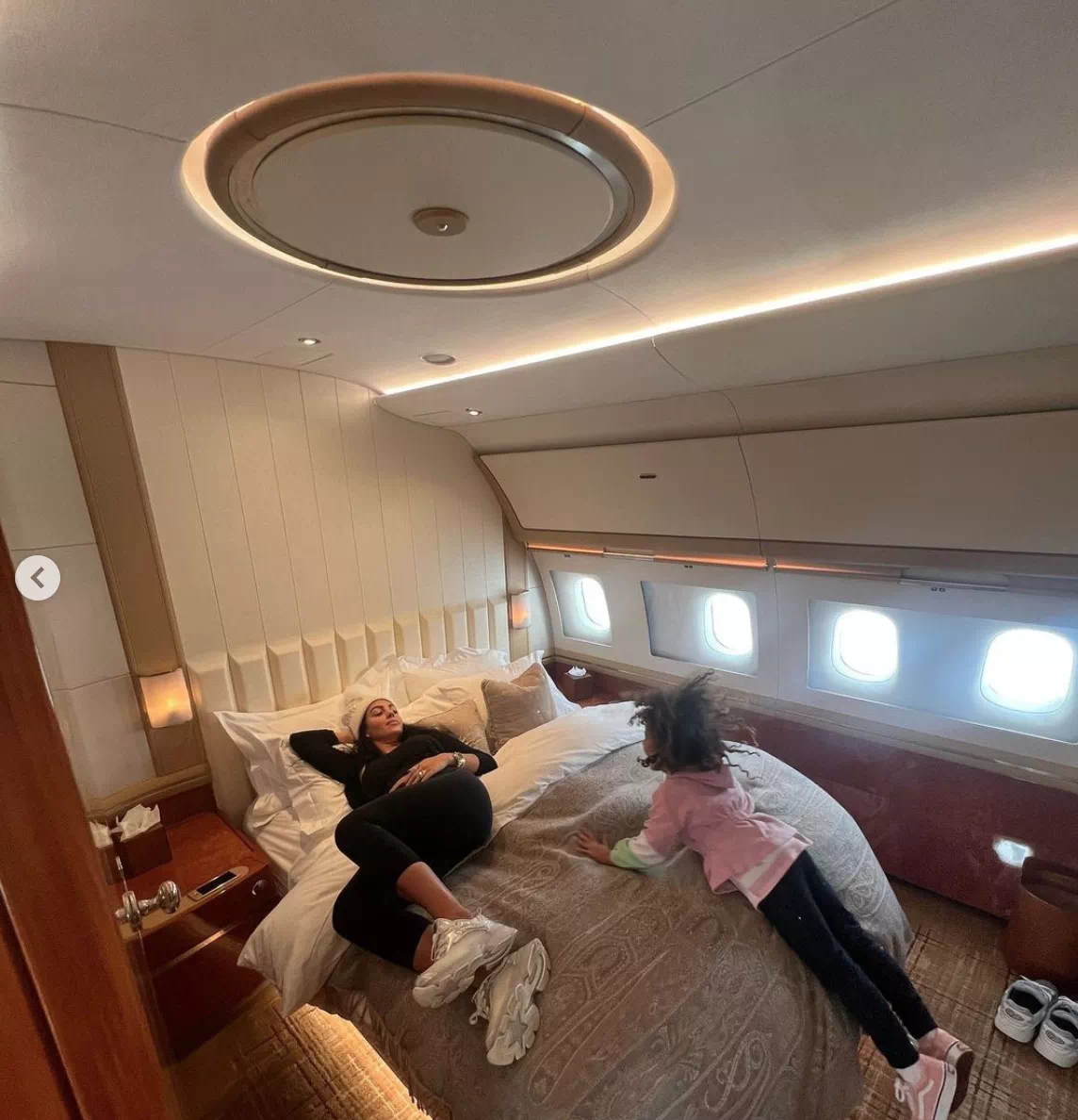 ▲鉴于去沙特要入乡随俗,乔治娜也罕见地穿上了保守的黑色,裹得严严实实。黑色MaxMara高领毛衣和伊丽莎白·弗兰奇 (Elisabetta Franchi) 设计的蓝色私家牛仔裤,耳环是Pasquale Bruni,亮粉色的 Hermès包包最亮眼。▲在社交媒体上表示要在沙特开启新生活了。安东内拉也点赞了这个帖子。看来天王之间不方便直接互动,嫂子团倒是来往挺频繁的。之前几天,她也晒出了去沙特时的私人飞机照,爱马仕包包和高级珠宝是不可或缺的伙伴:
