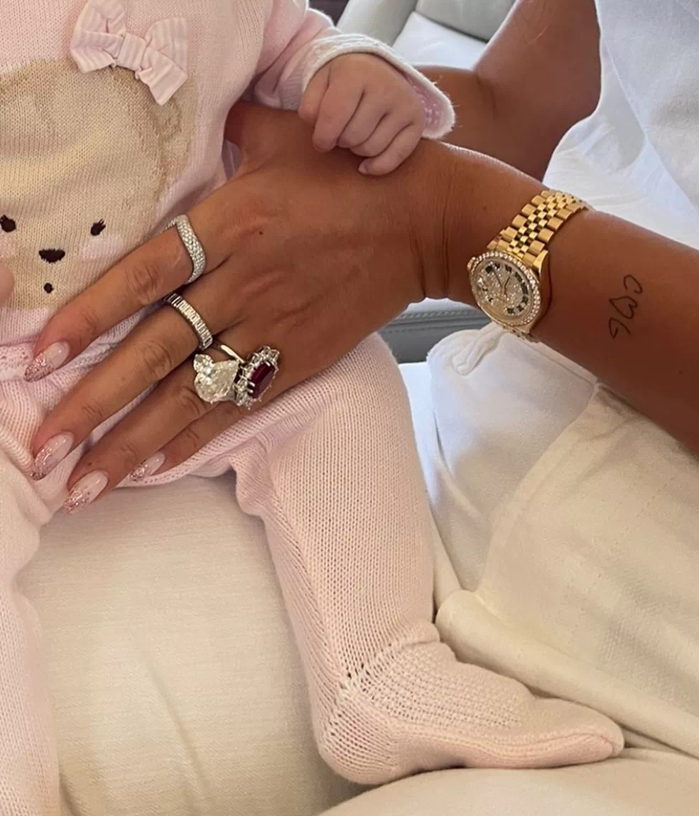 圣诞节乔治娜送给C罗一辆劳斯莱斯,这跟凌昆送周杰伦兰博基尼的Urus一样,是一个反向操作的噱头,送是女人送的,但大家都知道钱是男人挣的,但不管怎么,作为晒恩爱的反向操作,群众们也是实慕了,关键是又是一波流量啊……更早一些时候,她的珠宝、戒指和稀有皮包包更是闪瞎眼,怪不得在纪录片里有人问你们啥时候结婚,乔治娜说“我的手上已经没空戴戒指了。”敢情人家说的是实话……