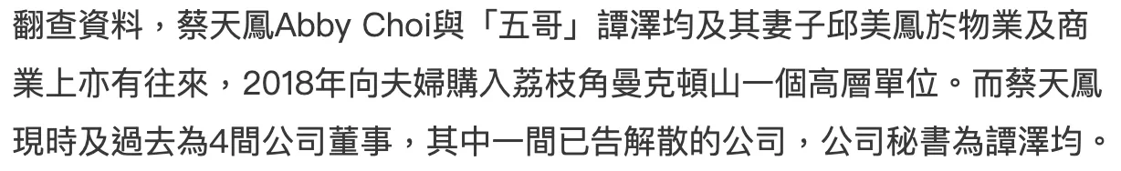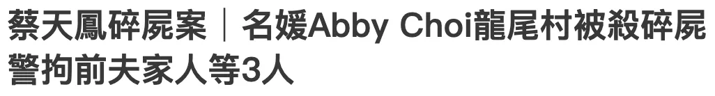 港岛名媛、豪门新抱,蔡天凤(Abby Choi),在24号确认被杀,惨遭分尸,警方找到她的尸体残骸,部分肢体已被烹煮,部分仍存放在冰箱之中……