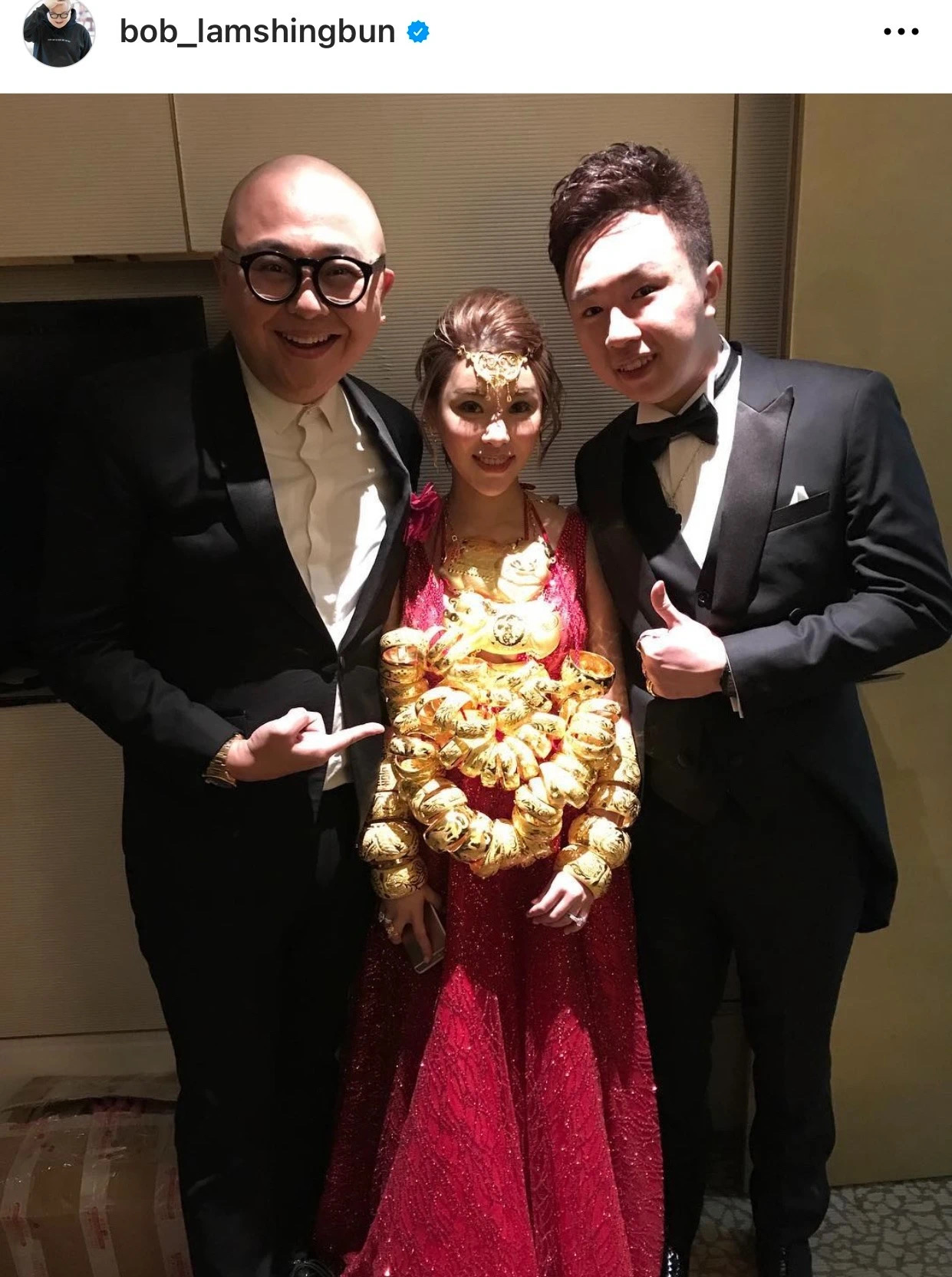 ▲ 2016年底,两人举行婚礼(有消息称只办了婚礼并未登记,各自财政独立)。金牌司仪林盛斌(Bob)曾在当时发过一张跟新人的合照,写道“恭喜太子爷Chris和新娘子Abby,祝幸福快乐”。新娘一身沉甸甸的金饰,象征着绝对财力,令人记忆深刻。