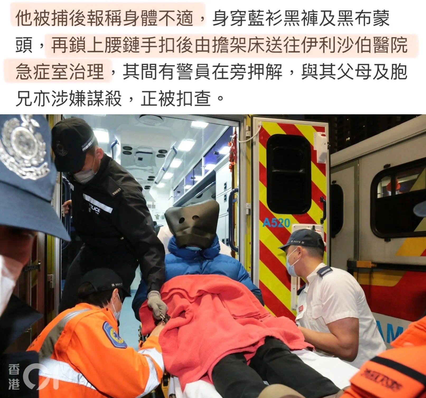 ▲ 落网后,他声称自己身体不适,被蒙头送医(图源:香港01)。