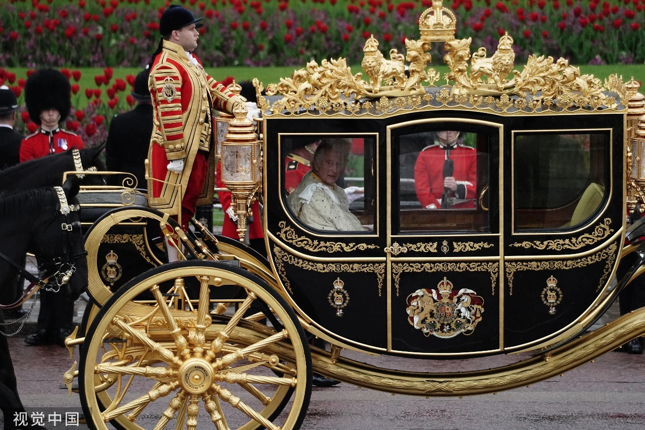 加冕仪式结束后,查尔斯换上了一顶略花哨、重量要轻一半的帝国王冠,进行接下来的巡游活动。