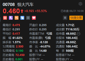 恒大汽车今日暴涨近56%。恒大汽车的再度拉涨,或仍与寻找”救命钱“的消息有关。5月26日,恒大汽车曾公告,宣布找到一次投资。公告称,潜在买方将向公司提供信贷额,以资助集团持续经营及发展集团电动汽车业务。然而,自5月26日之后,相关交易再未披露新的进展。