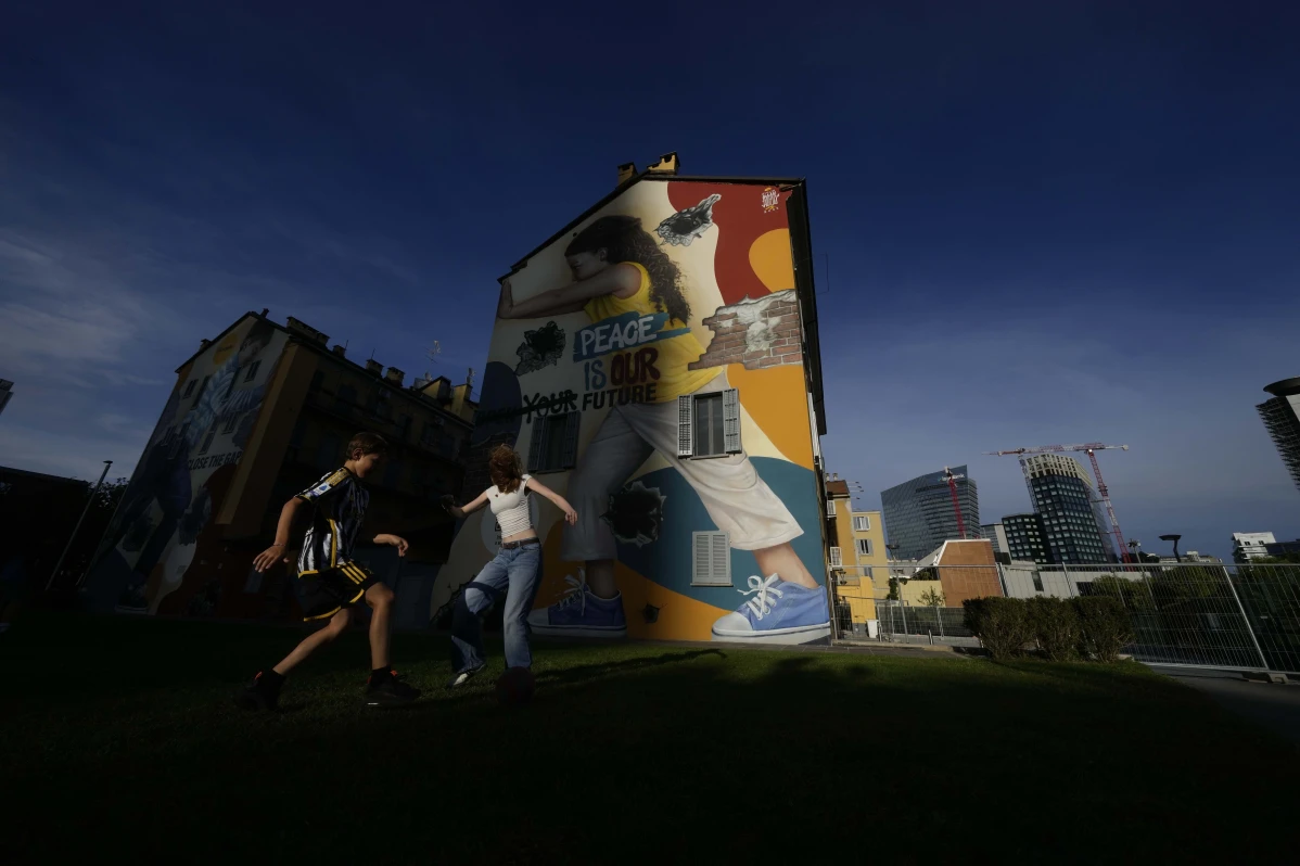 A painting of Jesus is covered in cracks after a Russian bomb hit the dome of an Orthodox church in Novoekonomichne, Ukraine, Tuesday, Sept. 17, 2024. (AP Photo/Evgeniy Maloletka) |