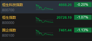 收评:港股恒指跌1.07% 科指跌0.2%内房股、券商股普遍回调