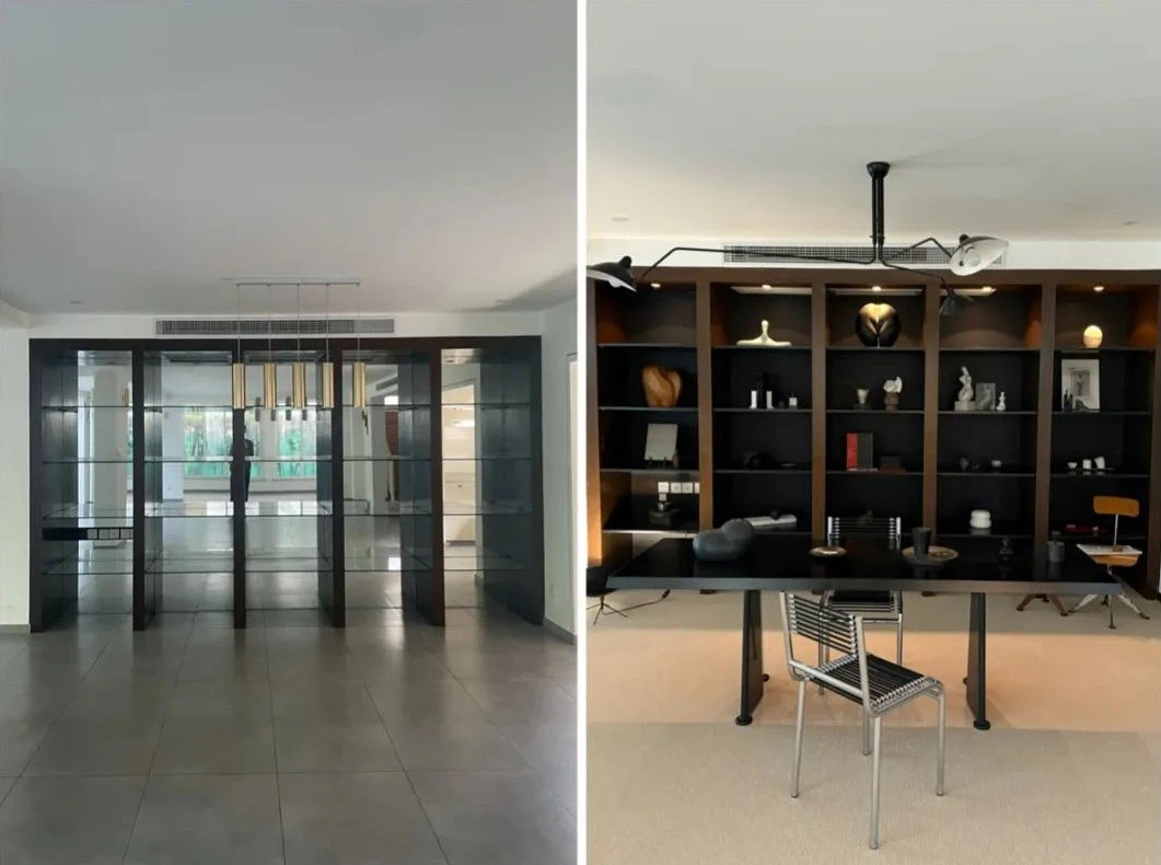 今年,我从上海市区搬到了近郊,靠近虹桥机场。我非常痴迷现代主义建筑,第一眼看到这个房子,就想到艾琳·格瑞的海边小屋E-1027,当即就把我想做的一些改造做成PPT发给了房东。
