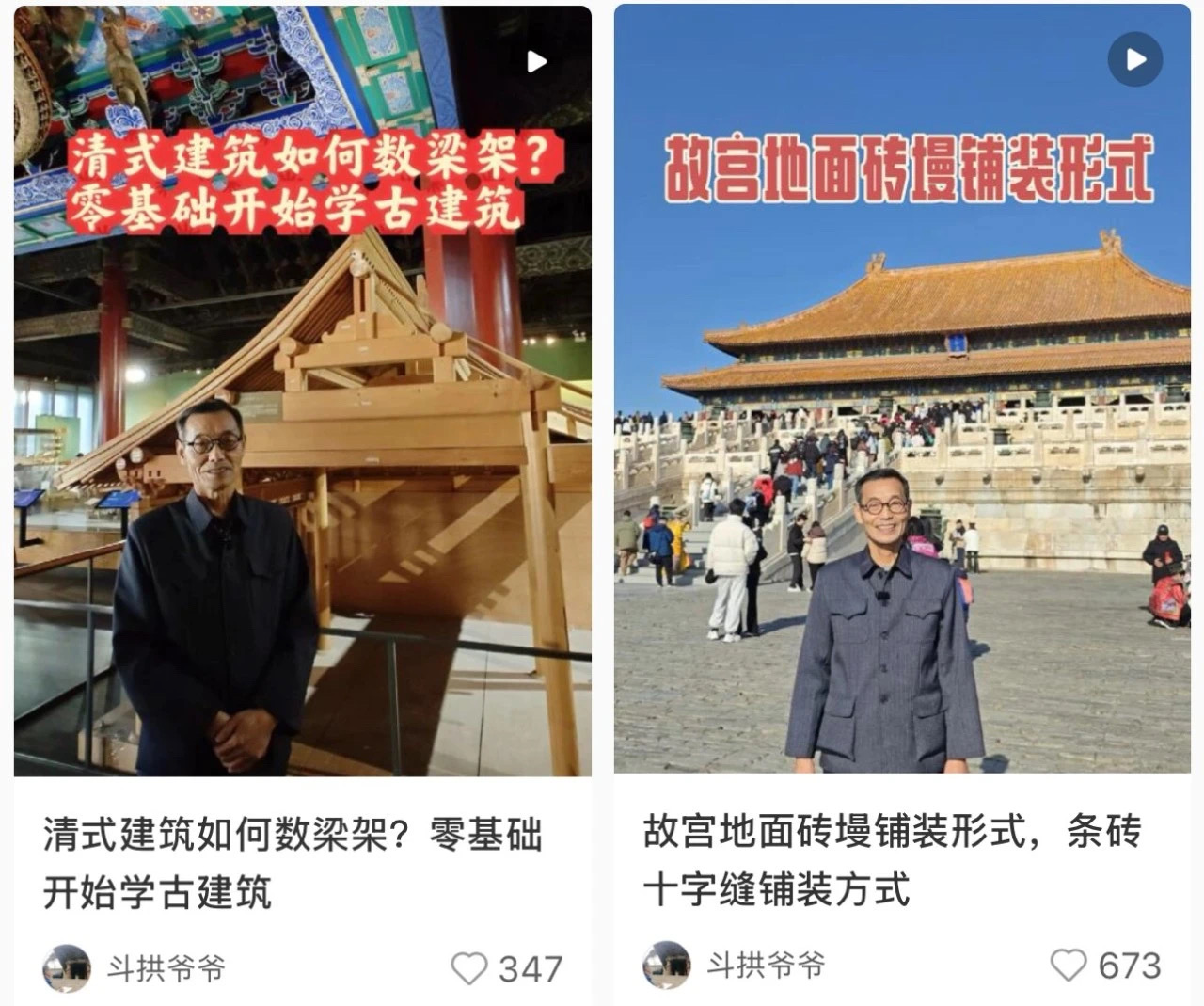 “斗拱爷爷”王永先出生于古建林立的山西,职业生涯参与修缮的古建筑超过100座。他在小红书上开起了古建筑学堂,这位75岁的老顽童,总是穿着深蓝色的中山装出现在镜头前,还学会了运镜和拍摄。