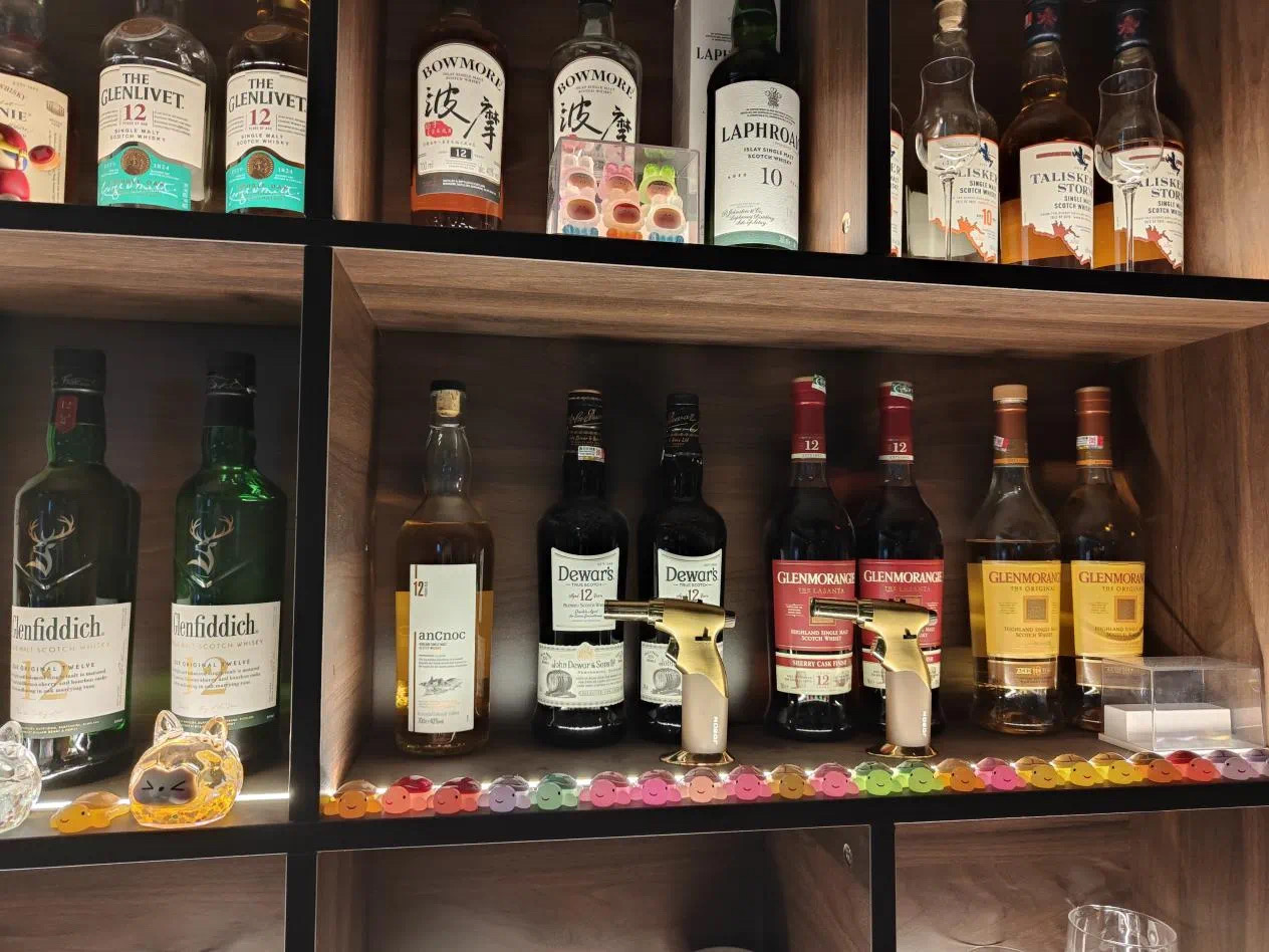 ▲ 一家玄学酒吧的酒柜上,摆满了顾客送的小装饰品。图 / 每日人物摄