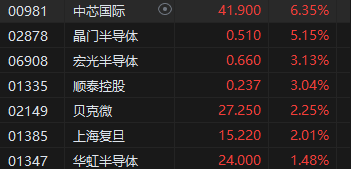 半导体概念股集体走强,中芯国际涨超6%。消息面上,1月17日,国家人工智能产业投资基金合伙企业(有限合伙)成立,出资额为600.6亿元。该企业由国家集成电路产业投资基金三期股份有限公司、国智投(上海)私募基金管理有限公司共同出资。华鑫证券认为,算力芯片和存储芯片将成为产业链上的关键节点,此次国家大基金三期除了对半导体设备、材料等的持续投资之外,更有可能将HBM芯片等作为重点投资方向。