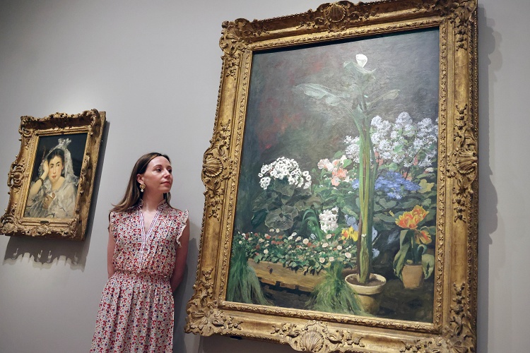 英国科陶德美术馆举办「从戈雅到印象派:奥斯卡·莱因哈特收藏」特展,一幅法国印象派画家 Pierre-Auguste Renoir 1864年油画《百合与温室植物》正在展出,伦敦。这是瑞士知名已故收藏家 Oskar Reinhart 藏品首次在英国大规模展出,共计呈现超过200件画作,包括西班牙浪漫主义画家 Francisco Goya、法国浪漫主义画派先驱 Théodore Géricault、法国现实主义画派创始人 Gustave Courbet,以及多位印象派和后印象派艺术家作品。展期持续至5月26日。摄影师:Neil Hall