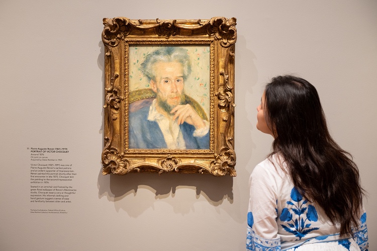 英国科陶德美术馆举办「从戈雅到印象派:奥斯卡·莱因哈特收藏」特展,一幅法国印象派画家 Pierre-Auguste Renoir 1876年油画《维克多·乔克特肖像》正在展出,伦敦。这是瑞士知名已故收藏家 Oskar Reinhart 藏品首次在英国大规模展出,共计呈现超过200件画作,包括西班牙浪漫主义画家 Francisco Goya、法国浪漫主义画派先驱 Théodore Géricault、法国现实主义画派创始人 Gustave Courbet,以及多位印象派和后印象派艺术家作品。展期持续至5月26日。摄影师:Ben Montgomery