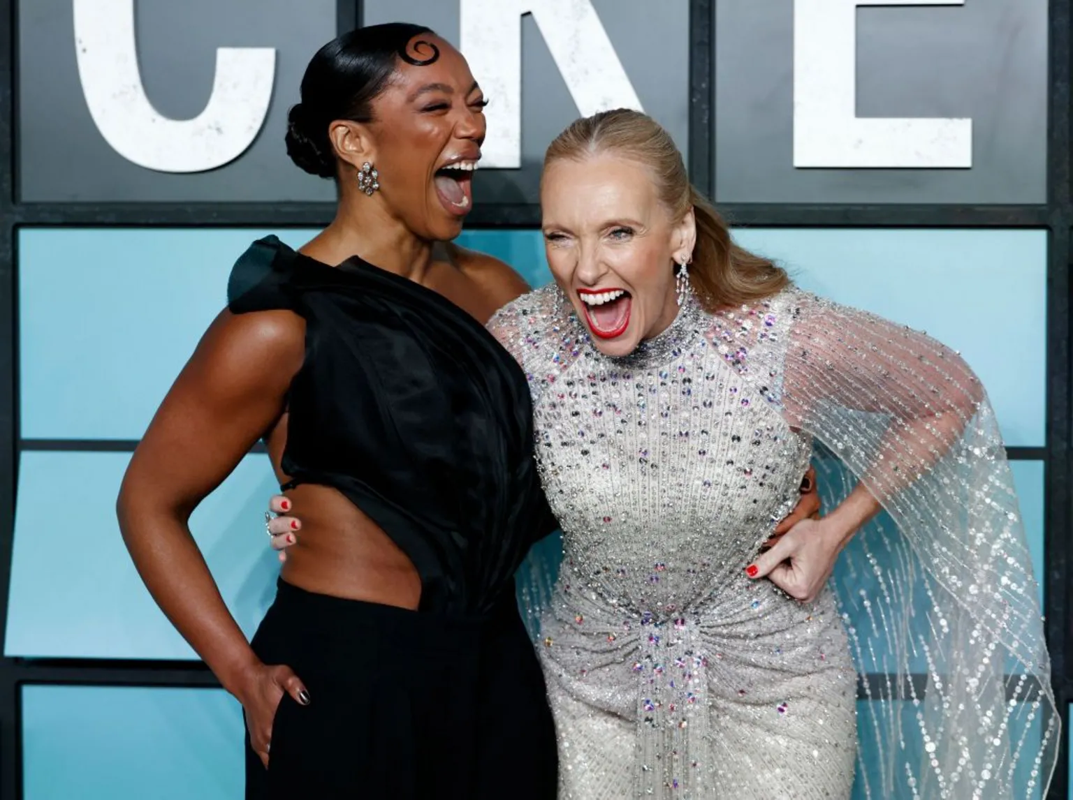 Naomi Ackie (left) and Toni Collette arrive for the World premiere of their latest film Mickey 17, in London's Leicester Square.
