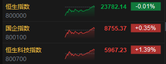 收评:港股恒指跌0.01% 科指涨1.39% 大消费板块整体强势