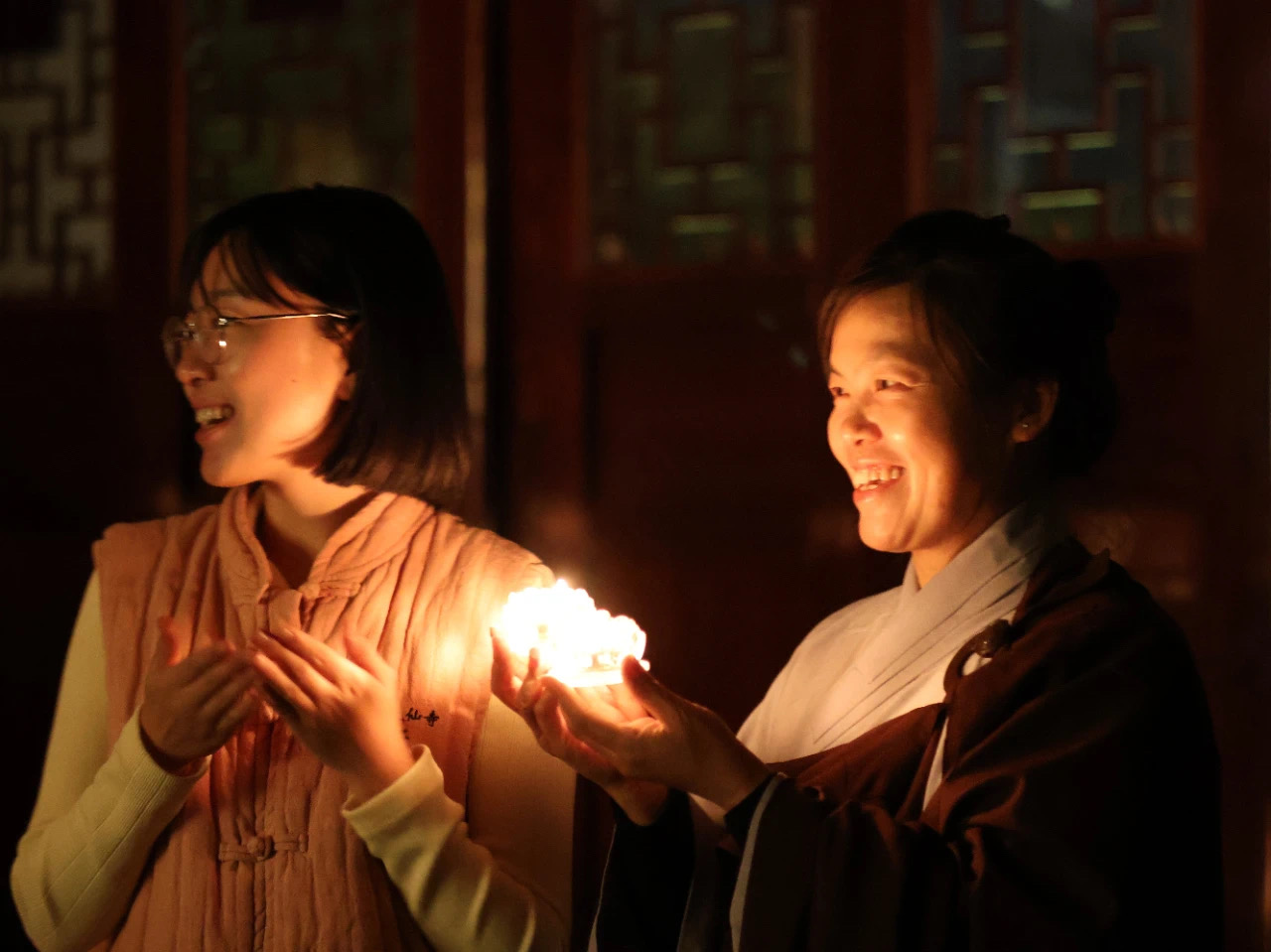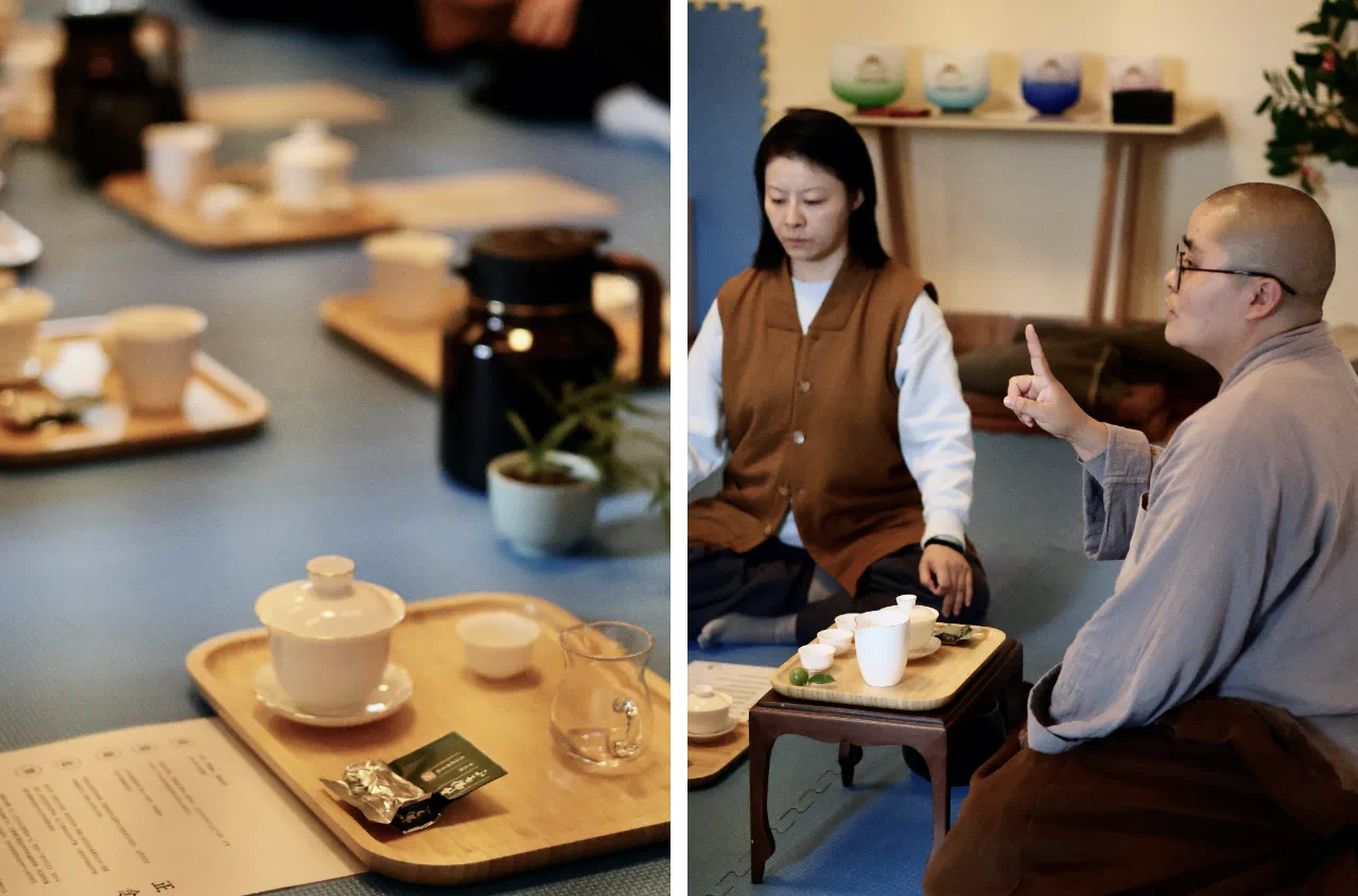 禅修营一次为期3天,每天4点半天还没亮,大家起床,准备早课;6点,阳光初升,练习八段锦;早斋过后,行禅上山,感受山林间的风、空气和自己的身体。禅修过程中,大家静坐冥想,也有禅舞、品茶、抄经、传灯等活动。分享会现场,总有人悄悄落泪。“很久没有被这样深深地拥抱过”,“第一次感觉到被无条件地接纳了”。义工醒醒说:“没有什么东西是不能跟师父谈的,这个社会怎么对女性,就怎么对出家前的师父,也就怎么样对我。”