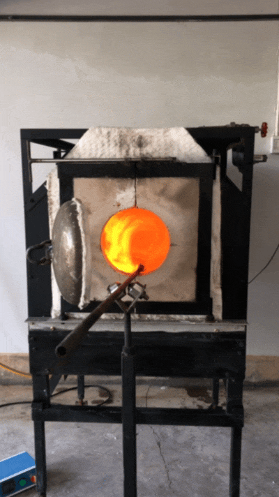 吹制窑复杂的地方,比如说火枪的进气比,液化气跟空气的比例,腔体跟火枪的比例……有非常多的细节。做吹制到后来其实更多是身体的肌肉记忆,你把脑袋屏蔽掉,让你的手去做。