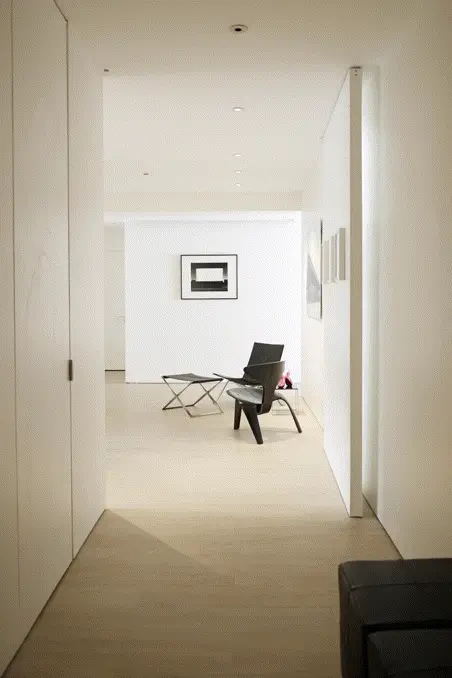 做了旋转墙之后,当墙体90度开启,玄关和前厅都独立出来,墙面挡住了外界的干扰,前厅就成为了一个可以停留的空间。