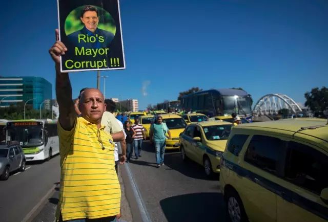 巴西尚处于共享出行的起步阶段。图为2017年7月,出租车司机示威抗议打车软件公司。@视觉中国