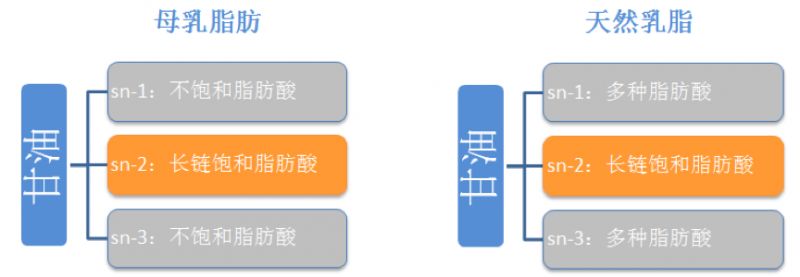 既然母乳和普通配方奶粉的脂肪结构不一样,那么改造脂肪结构是最直观的做法,即调整甘油三酯中各个位置上脂肪酸的组成。