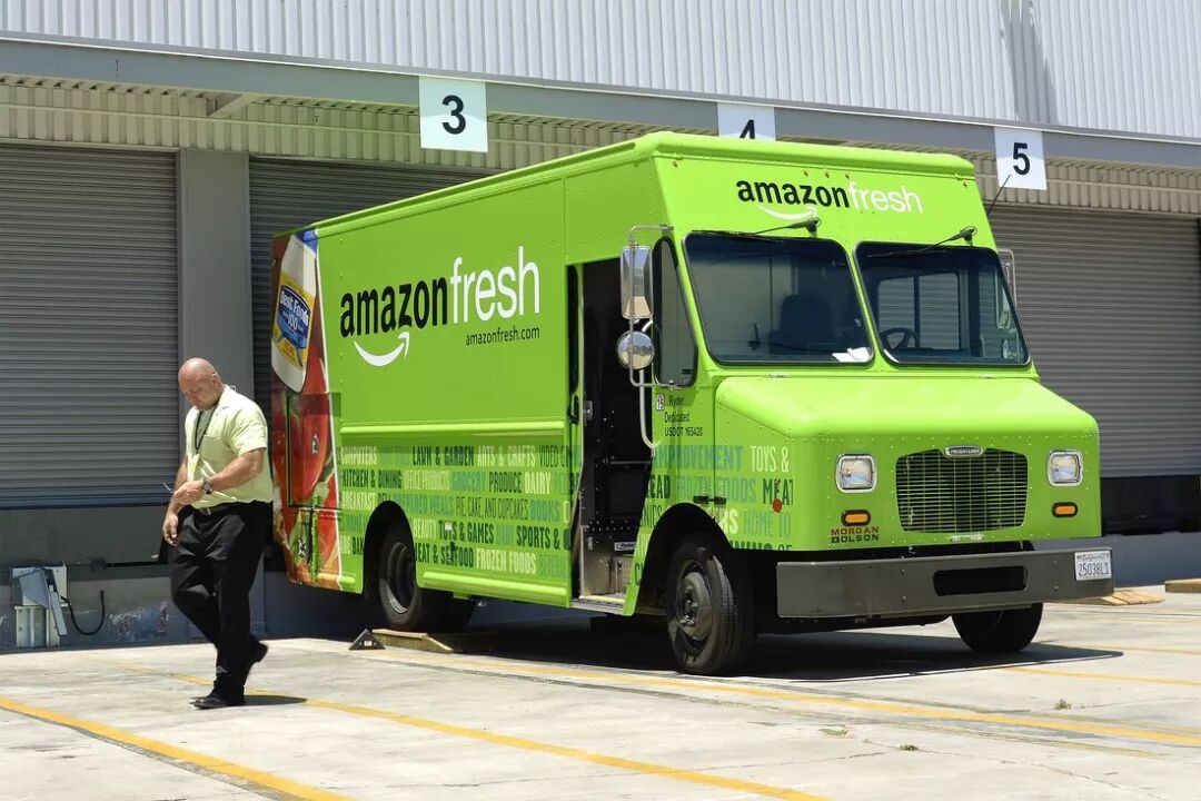 洛杉矶一辆AmazonFresh 的卡车。图片来源:KEVORK DJANSEZIAN—GETTY IMAGES