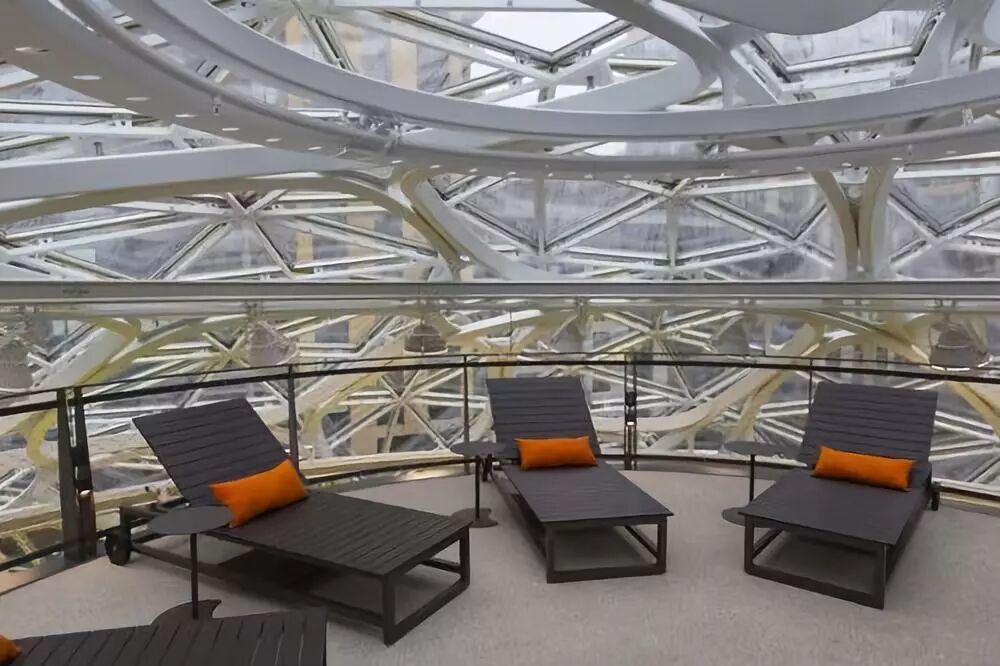 2018年1月23日,亚马逊Spheres办公楼内的休息区已清晰可见。