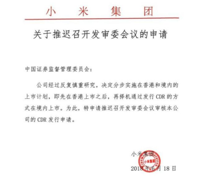 6月19日早间,小米发布公告称,“公司经过反复慎重研究,决定分步实施在香港和境内的上市计划,即先在香港上市之后,再择机通过发行CDR的方式在境内上市”。
