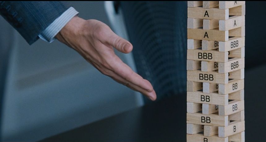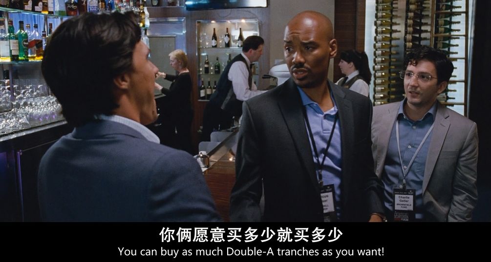 在电影中,Mark Baum跟同事一起去评级机构质疑,得到了非常无语的回应,对方一副“你是哪个单位的?”这种语气,让Mark Baum深刻理解到,此时的华尔街,已经被抵押债券统统绑架,在“房价永远涨”的背景音乐之下,常识和风险被抛在脑后,抓紧赚钱才是王道。