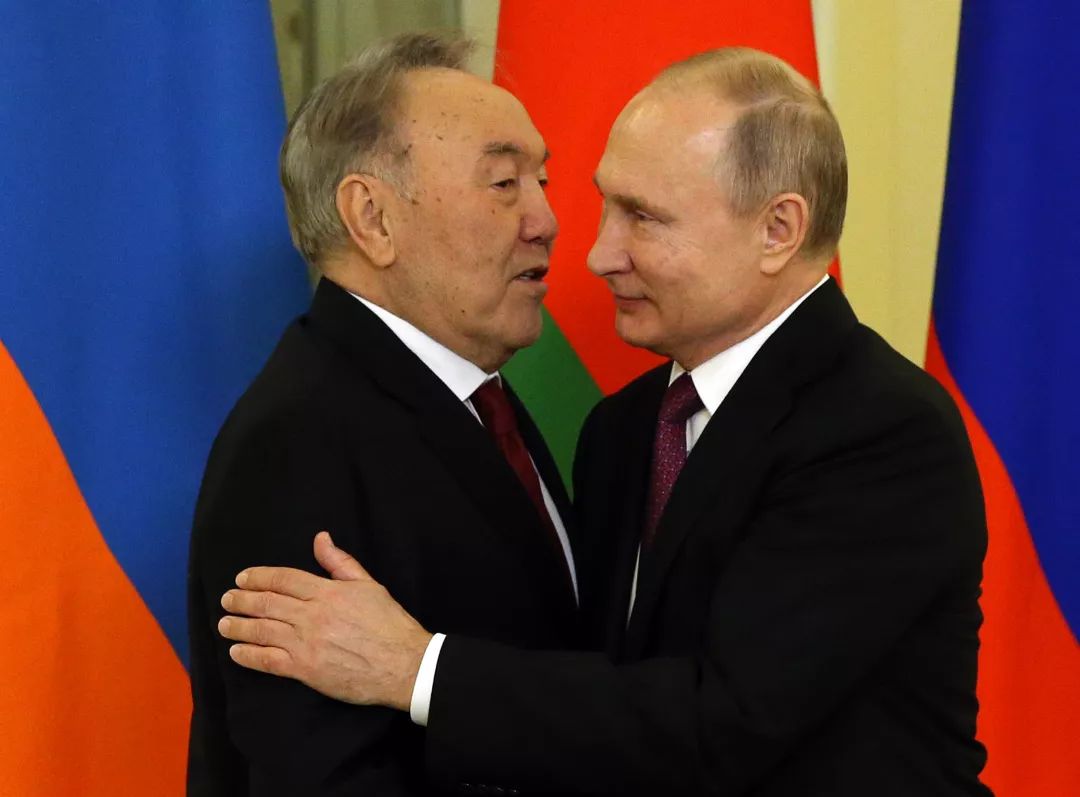 △ 2018年独联体领导人会议上,普京正欢迎哈萨克斯坦总统纳扎尔巴耶夫,但这个紧密的伙伴正在远离俄罗斯 / 视觉中国
