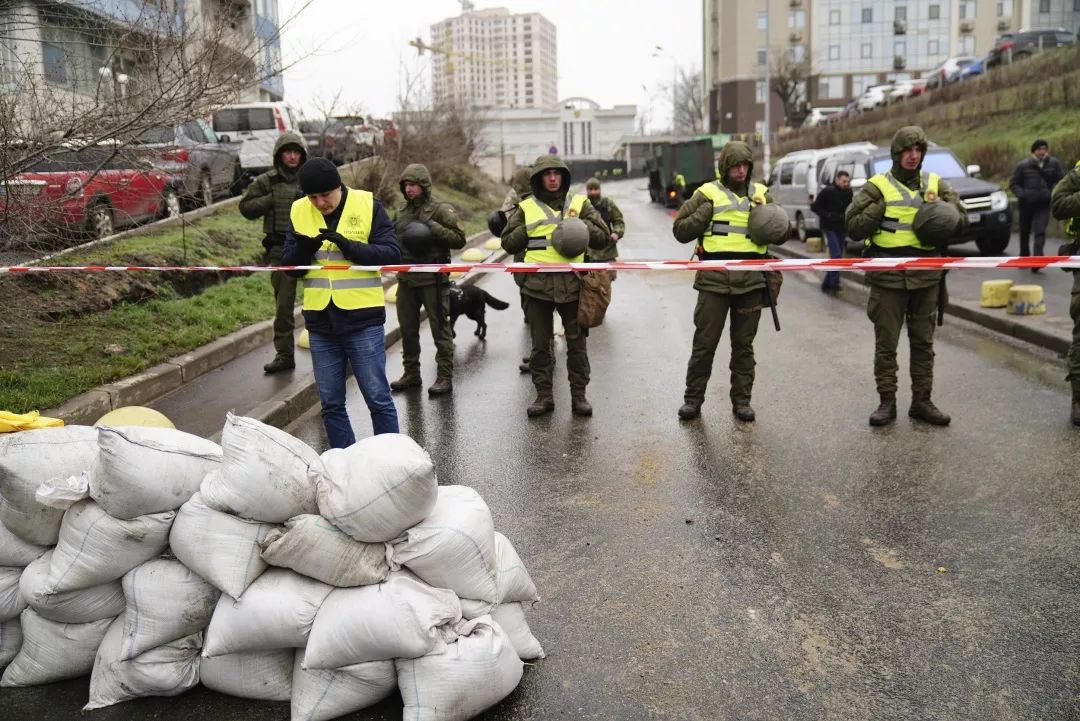 △ 乌克兰国民卫队和警察封锁了俄罗斯驻乌克兰领事馆,以阻止俄罗斯公民进入投票站参加大选投票 / 视觉中国