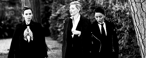 ↓周迅、艾米丽-布朗特、凯特-布兰切特三位气场强大的女星拍摄广告大片,片中三位女神穿上西服套装,比男人更加霸气,粉丝们都惊呼“帅到没朋友”。