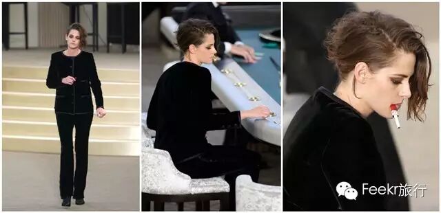 ↓今年7月,香奈儿在巴黎大皇宫2015秋冬的高定大秀,穿着黑色套装边抽烟边进场的小K果然是条汉子。