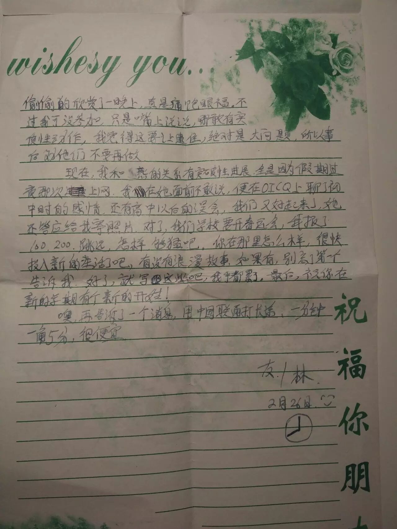 就在刚才,我把这封十五年前的信找出来,给他拍照片发了过去。他发了个哭的表情,说,那时候好纯洁。