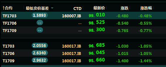 周一,A股大跌,创半年来最大跌幅,创业板暴跌5.5%。债市午后,中金所10年期国债期货主力合约T1703跌幅进一步扩大,收跌1.05%,刷新上市以来最大单日跌幅。人民币对美元中间价报6.9086,下调114点。(综合)