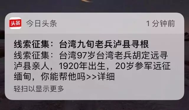 今日头条对泸州的用户进行弹窗,对胡定远回家起了至关重要的作用