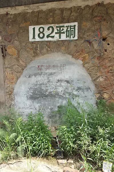 选矿场附近,是已经封闭的两个老矿洞。似乎由于采掘雄黄的严重,回避了“洞”这样的平常词汇,标着“一号窿”和“二平硐”这样的古老名称,且在两旁画着庇护的龙纹,似乎千年采黄祭祀仪式的延伸。