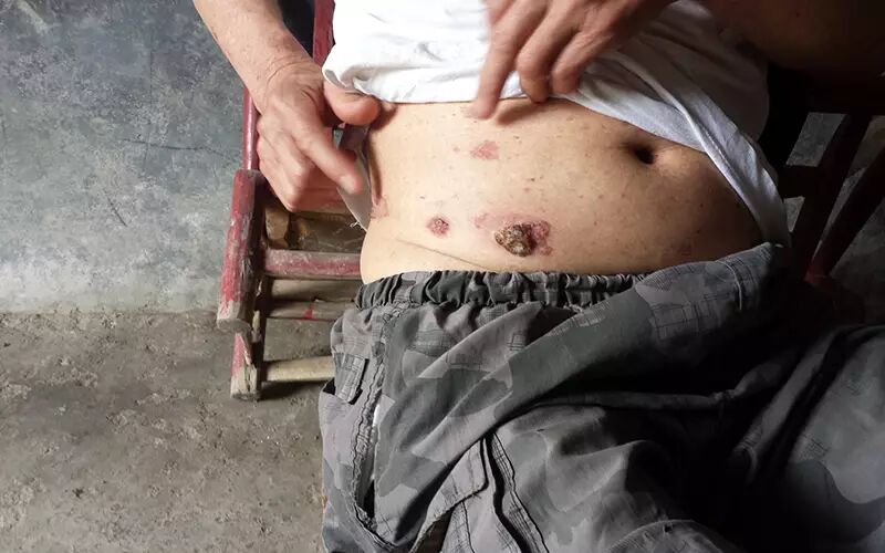 △村民肚子上的皮肤癌创口,像是砷中毒开出的恶之花。 (出版社供图)