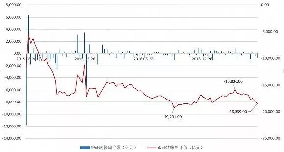 界面新闻梳理了自2015年6月沪指高点以来银证转账方面的数据,结果显示,彼时至今A股市场累计流出资金达1.85万亿元,并且绝大多数时间里银证转账累计值均为负数。这也就意味着最近三年多的时间里,市场整体的资金出逃效应都十分明显,A股长期处于存量博弈的状态。
