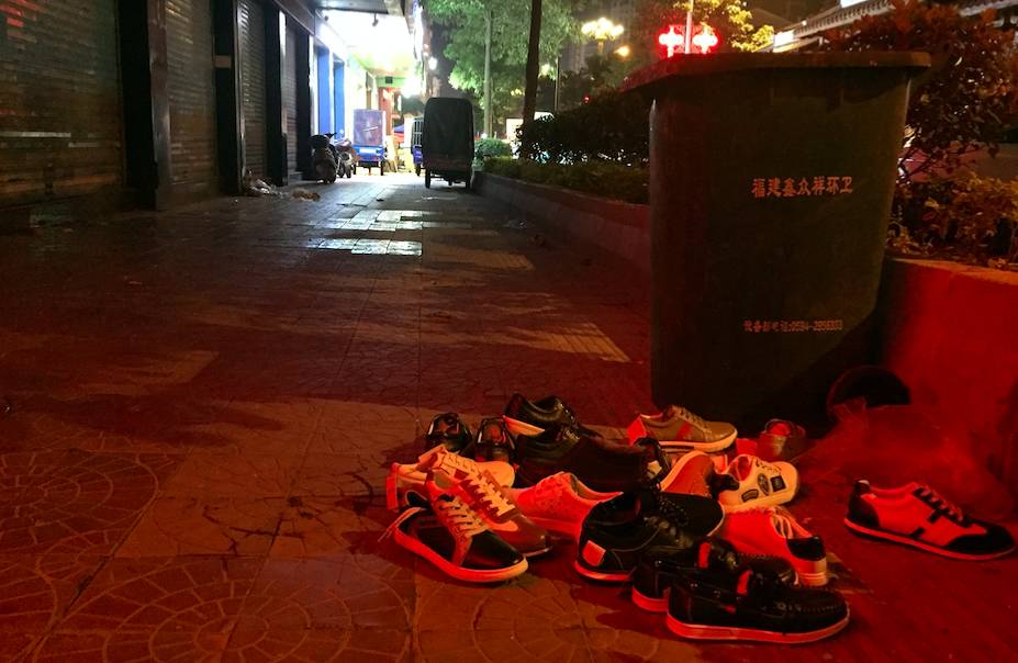 白天的安福,除了两家24小时便利店里昏昏欲睡的服务员,整个小区鲜见人迹。而在深夜10点后,假鞋让这个总面积80多万平方米的小区,成为莆田晚上最繁华的地段,没有之一。 一种在当地流传甚广却无法求证的说法是,国内市场上10双假鞋里,有9双从这里发货;全球每3双耐克鞋中,便有一双是来自这里的仿品。 在网上有人戏称,这里的假鞋,和丹阳的眼镜、南通的床品4件套、华强北的手机,合称中国假货“F4”。 第一夜:我要找一双最NB的NB鞋