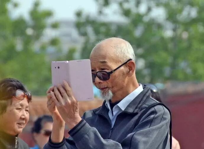 老者在使用智能手机