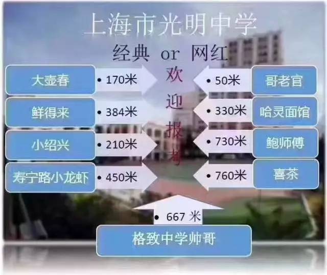这两天,一所上海市重点中学走红网络,不是因为严苛的学习氛围,也不是因为躁动的青春事迹,而是因为一则脑洞大开,画风清奇的招生广告。他们以学校附近多家网红餐饮作为诱惑招揽学生。