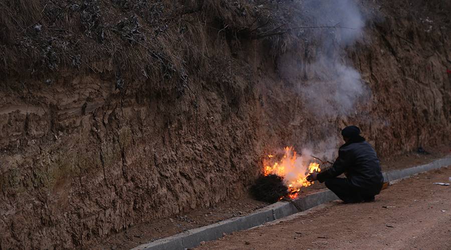 我们穿上孝衣,准备好香蜡,祭奠用的白酒、铁锨等。在祖父的带领下,先到大门口、厨房门口、院角几个地方,烧了香蜡冥票,磕了头。然后去坟地。