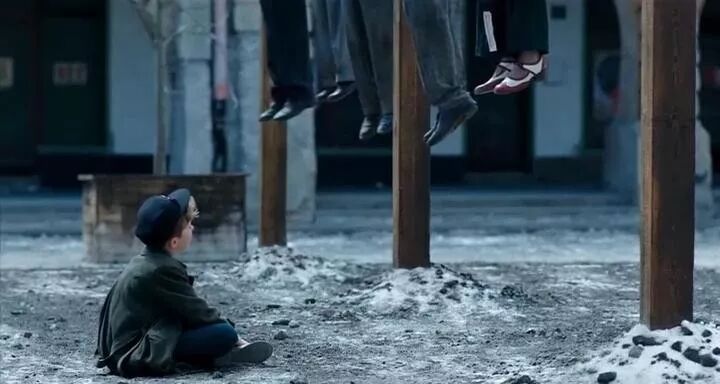 比如,在纳粹训练营里,十岁的孩子被教育去杀人,明明是展现人性之恶,却被特意处理得欢快明亮,孩子们在火堆旁的欢笑和嬉闹,仿佛是一次普通的露营…