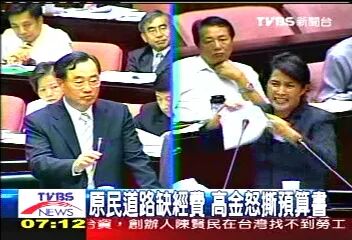 ▲ 为原住民振臂高呼争取权益,因为经费缺失而怒撕预算书。