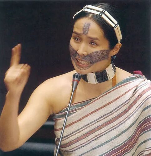▲ 她会画着泰雅族的纹脸义正辞严地质询,以此来让更多人关注到原住民的群体和他们的文化。