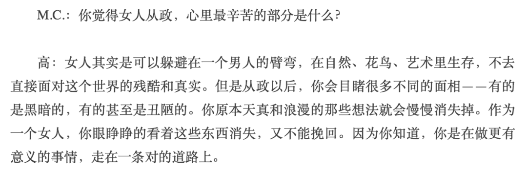 她说,当政客和当演员一样,都需要拥有极高的敏感度和发自肺腑的热情,还要用超强的表达能力在最短时间内表情达意。