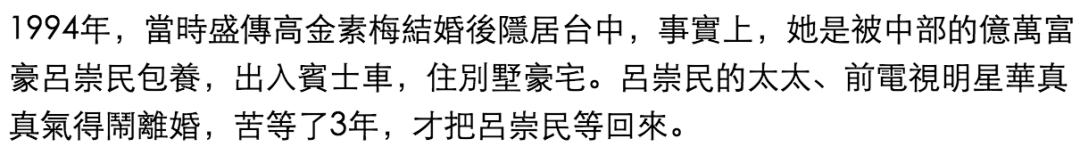 要是普通女明星,这个时候,应该会乘上东风加足马力多接点好剧本转型为文艺巨星,或者多接点戏多攒点钱,但金素梅注定了不是普通人。