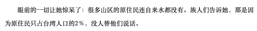 ▲ 也就是在这个时候,她才发现受灾严重的原住民部落一直都遭受不公平的苛待,她作为原住民后代的责任感和使命感油然而生,开始想着用自己的影响力为族人同胞出头来争取更多利益。